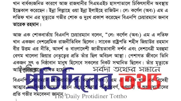 বিএনপি চেয়ারম্যান তারেক রহমান এর শোকবার্তা