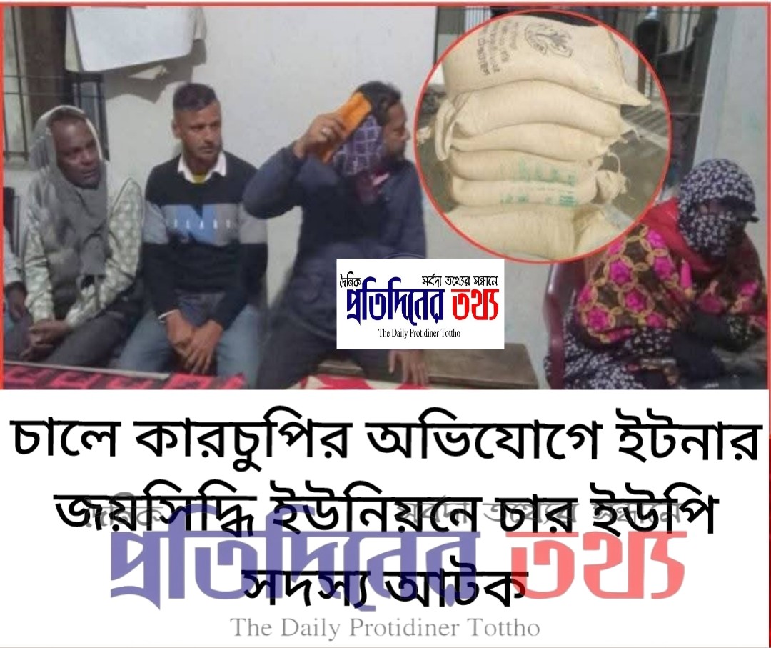 কিশোরগঞ্জের ইটনা উপজেলার জয়সিদ্ধি ইউনিয়নে ভিডব্লিউবি চাল বিতরণে অনিয়মের অভিযোগে ইউনিয়ন পরিষদের চার ইউপি সদস্যকে আটক করেছে সেনাবাহিনী ও পুলিশ।
