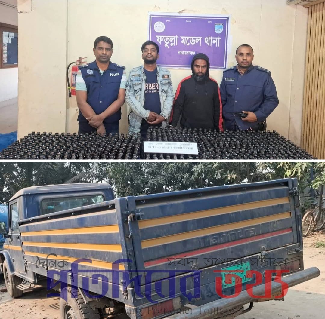 ফতুল্লা মডেল থানা পুলিশ কর্তৃক ৬৫০ বোতল নেশা জাতীয় মাদকদ্রব্য FAIRDYL ও মিনি পিকআপসহ ০২ জন মাদক কারবারি গ্রেফতার।