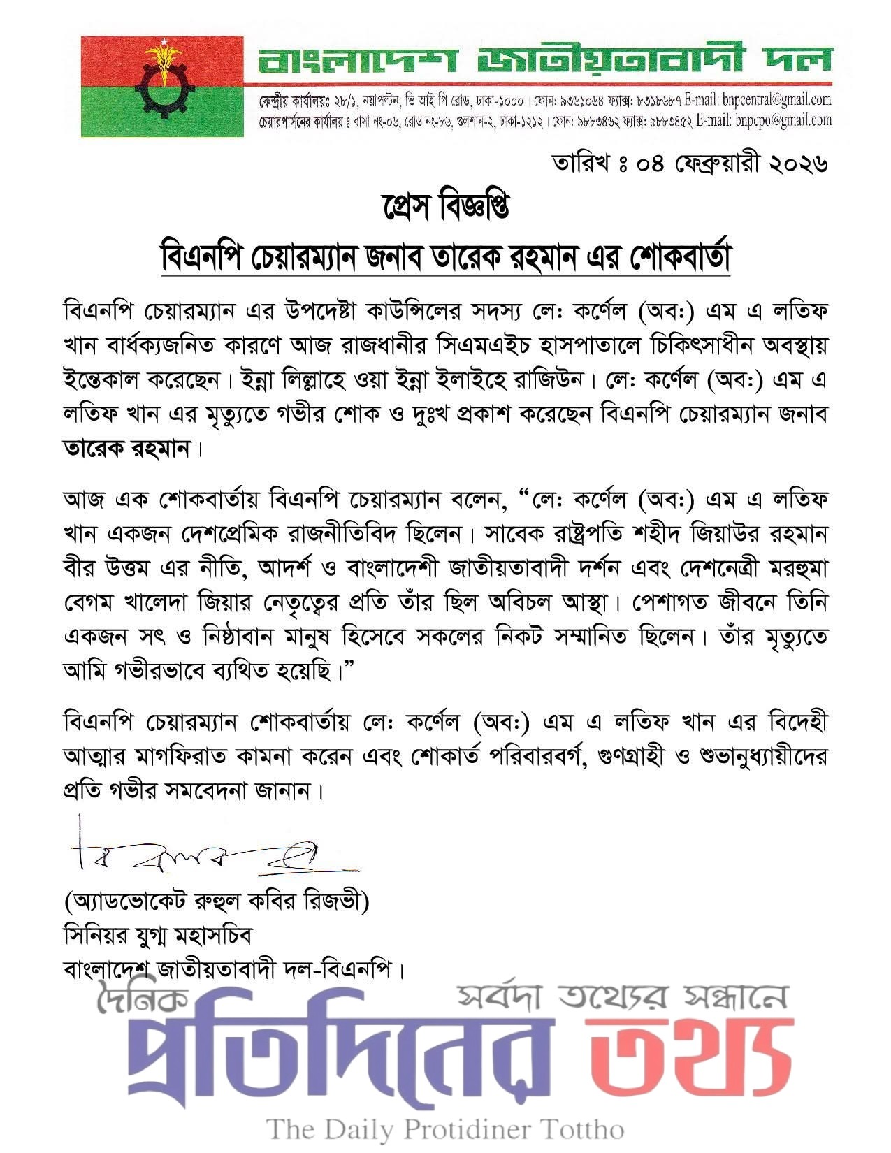 বিএনপি চেয়ারম্যান তারেক রহমান এর শোকবার্তা