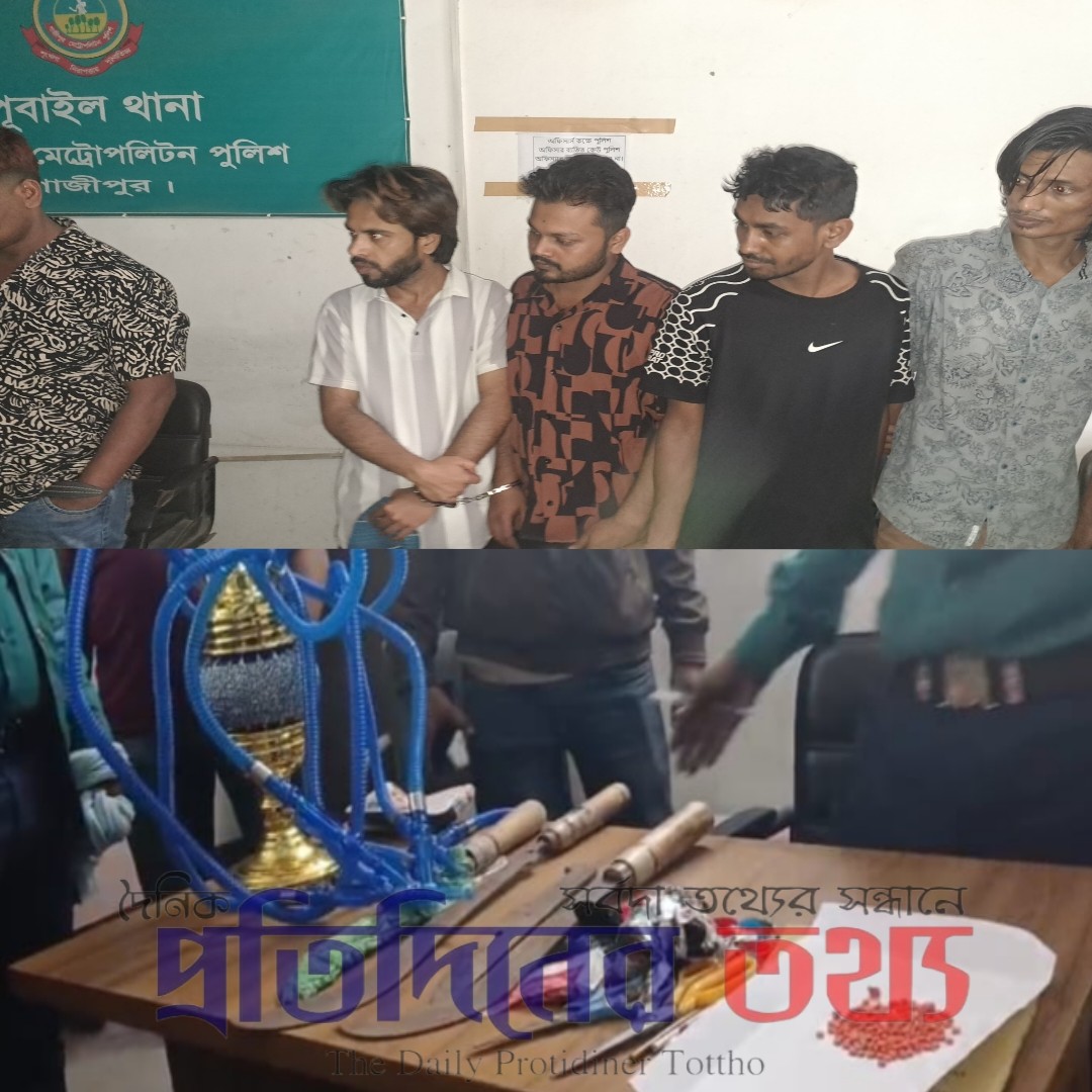 গাজীপুরের পূবাইলে টর্চার সেলে দেশীয় অস্ত্র,১৮০ পিছ ইয়াবাসহ ৯ মাদক কারবারি গ্রেপ্তার