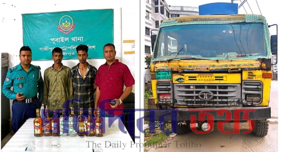 পূবাইলে মিরের বাজারে চেকপোস্টে ট্রাক তল্লাশি ভারতীয় হুইস্কিসহ দুই মাদক কারবারি গ্রেফতার