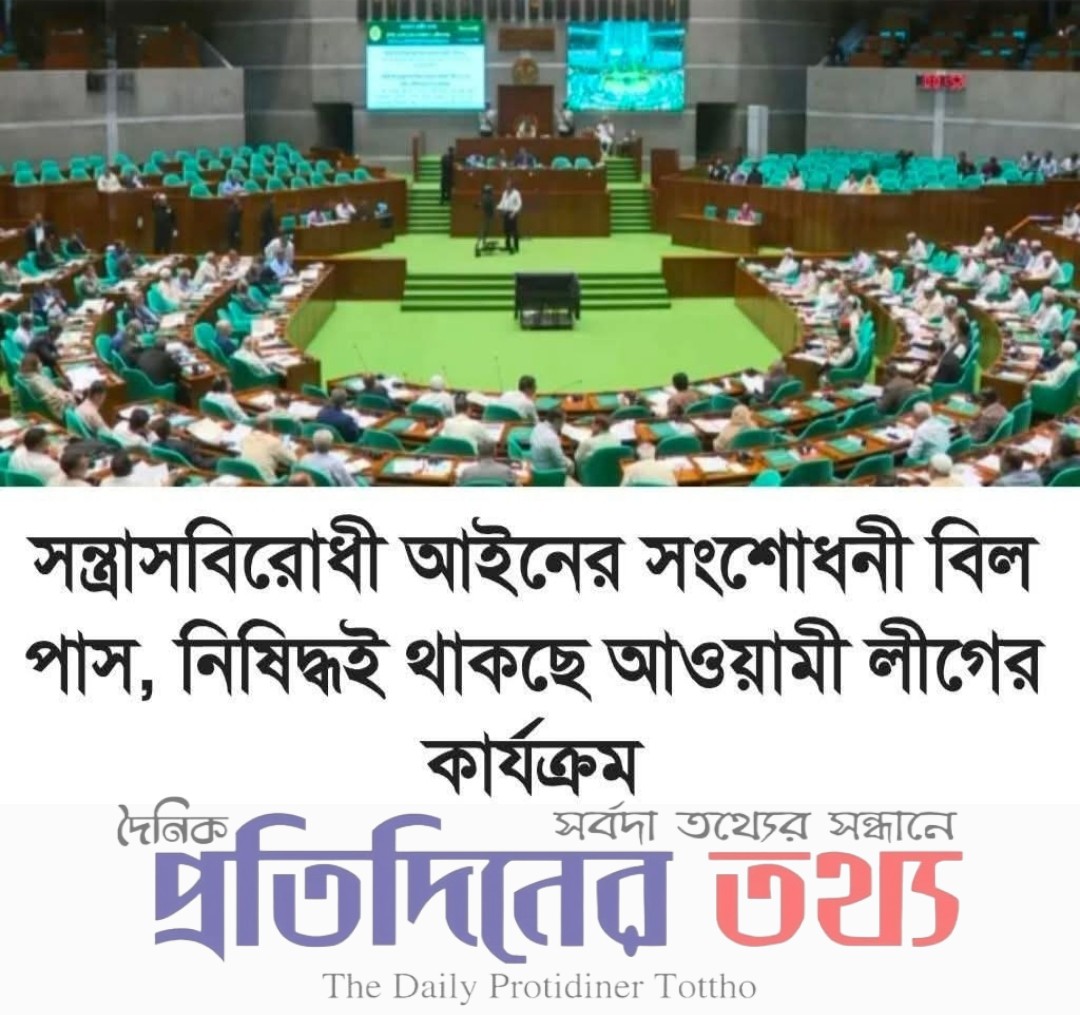 আওয়ামী লীগের কার্যক্রম নিষিদ্ধে সংসদে বিল পাস